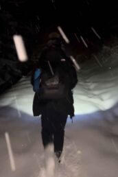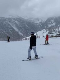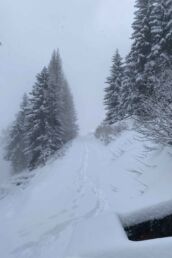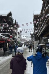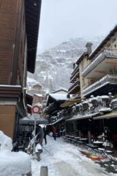 The real adventure began on our drive to our cabin in Val de Bagnes. A very snowy, winding two-hour journey through the mountains had us questioning our life choices. At one point we were convinced someone was following us—but thankfully, it was just a fellow mountain driver. Once we arrived, we parked at the bottom of the steep driveway and hiked up in at least two feet of snow—in the dark—to our Airbnb, completely wiped out but grateful to be safe and warm in a cozy cabin.