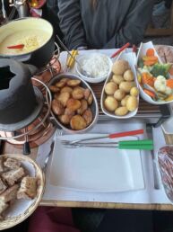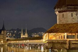 That evening we went into the city of Lucerne to have a traditional fondue dinner at Fondue House Du Pont. To get there, we walked along the river and crossed the Kapellbrücke Bridge (Chapel Bridge) which is a famous medieval wooden bridge built in the 1300’s.