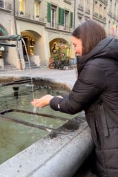 After dinner, we walked back through the town and found one of the many 16th century public drinking fountains, and decided to try it for ourselves.